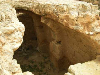 Au niveau de la citadelle byzantine (ph. 5), il a dégagé les tours et les portes et une partie de la mosquée, du fait qu’une bonne partie du monument est occupé par le cimetière musulman. A 180 m du rempart en dehors de la ville, il avait dégagé des thermes romains, et à 2 m du rempart est et à 100 m de l’angle qu’il forme avec le rempart nord, un hammam berbère daté du XIIIème siècle construit (ph. 6) en partie avec des matériaux romains.[73]